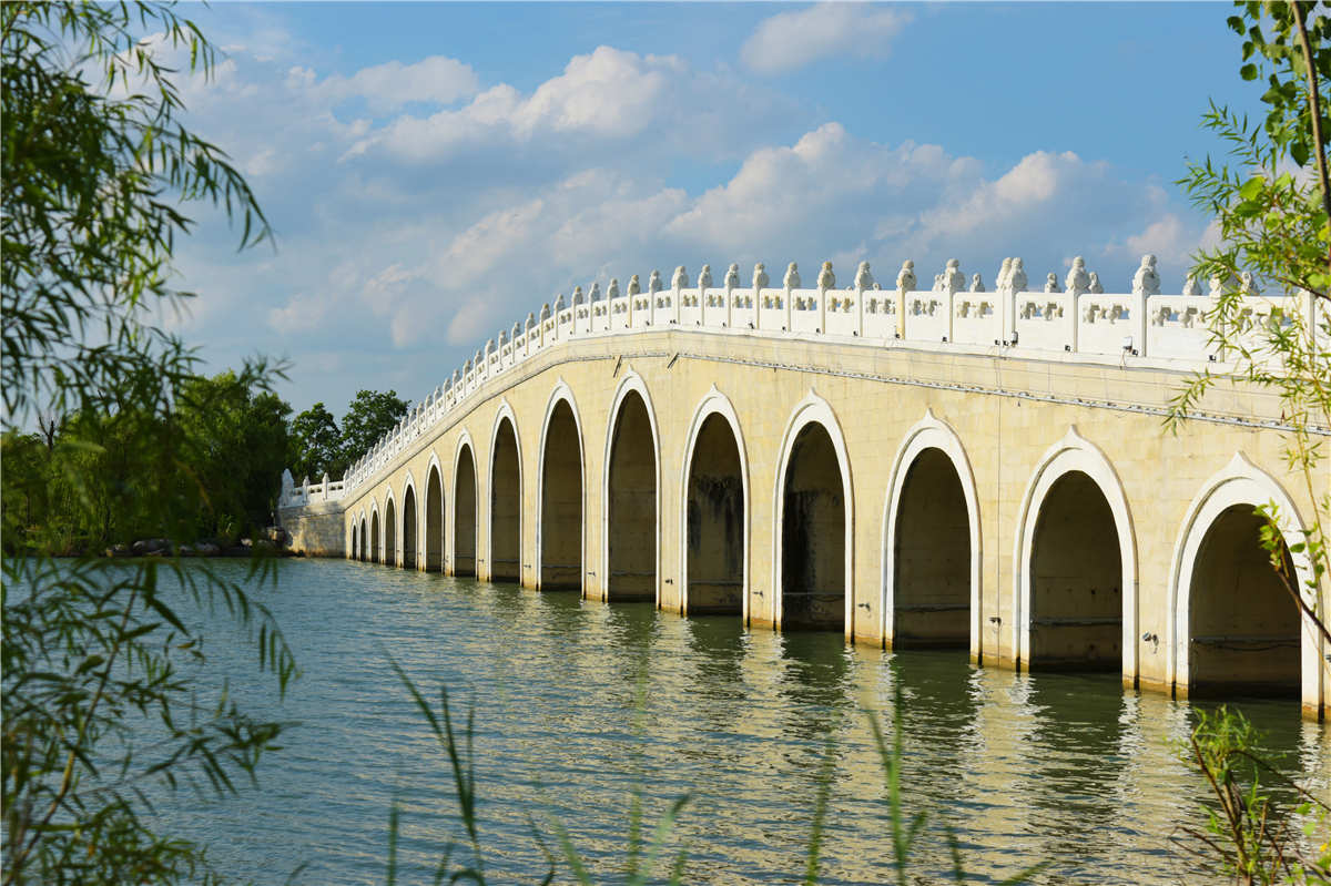 項目介紹:淮北市南湖景區(qū)景觀橋梁工程共43座景觀橋梁,造型各異,各橋梁結(jié)構(gòu)形式與外觀樣式均不相同、皆獨(dú)具特色,一橋一景;橋梁與所在區(qū)域板塊的周圍建筑及綠化景觀相協(xié)調(diào),互相增色,亦使得整個景區(qū)環(huán)境和諧一致,景致迭出。其中一座17孔拱橋,連接南北湖心島,拱圈均采用半圓拱,漢白玉欄桿柱上的獅子造型各異,栩栩如生,立面及拱下設(shè)置了多彩的亮化景觀燈,無論白天夜晚,此橋都是整個景區(qū)的核心景觀,吸引著萬千游客。